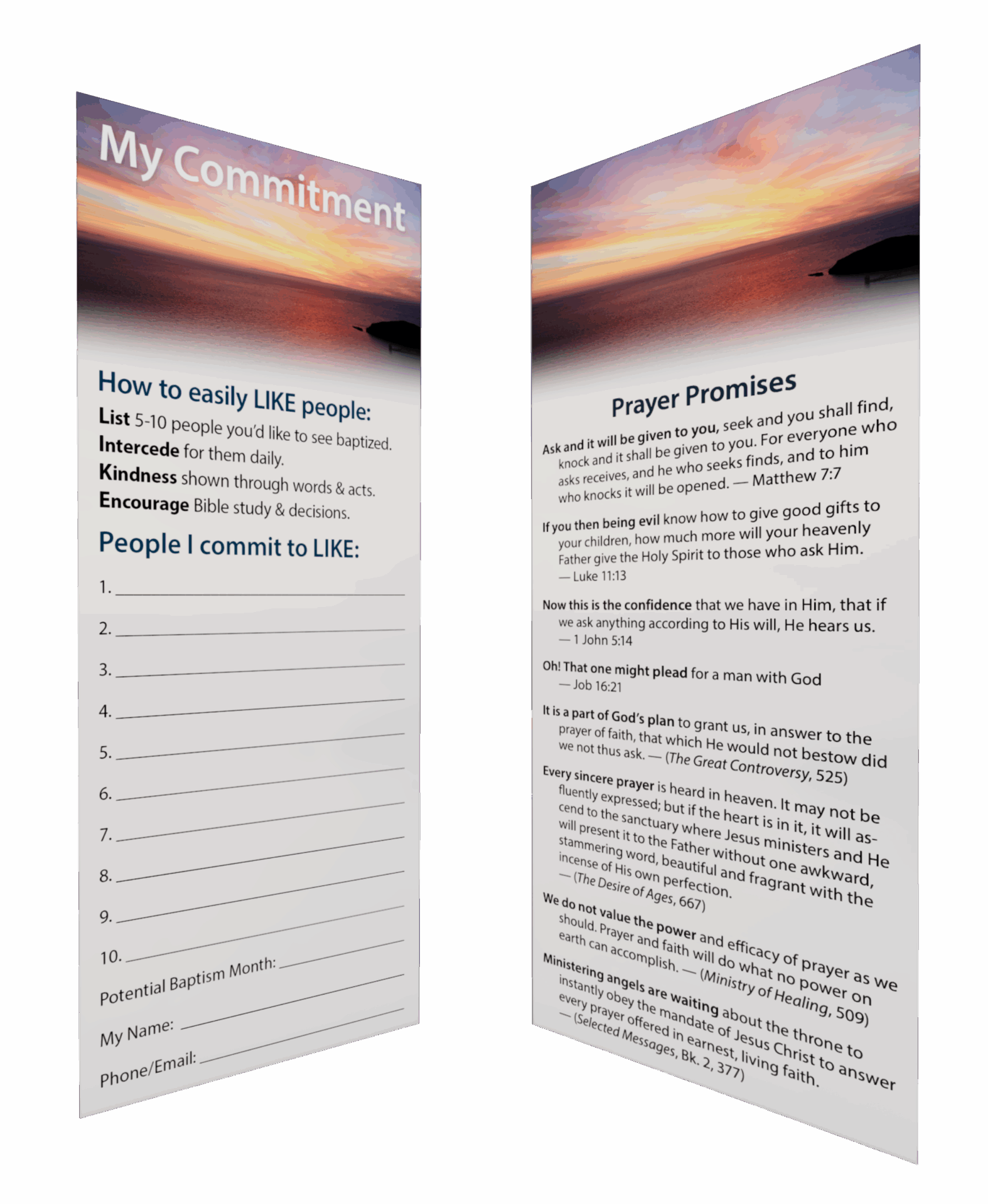1. PrayWrite down a list of 5-10 people you want to pray will accept Jesus Christ as Savior and Lord, embrace all Bible truth and unite with the Seventh-day Adventist movement through baptism.Download Prayer card 2. ShareAfter prayer, God calls us to go and to share His love and truth with others. Glow tracts are one of the easiest ways to get truth into people’s hands and start spiritual conversations. Pick up your Glow tracts at your church or order some online.Buy GlowGet Inspired3. StudyOrder Discovering God StudiesOnce we have shared Jesus with people around us and they have expressed interest in a further relationship with Christ, we can now begin to study with them. Studies like Amazing Facts Bible Study Guides are good resources to help you on your journey. Pick up some studies at your local church today and be blessed as people study together.Order Bible Prophecy Studies4. Homes of HopeOpen up your home to be a place that can be welcoming to people to share what is on their hearts and to draw closer to Christ.